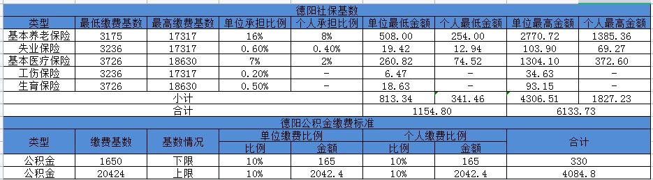 以下是德陽市2021年社保、公積金繳費(fèi)基數(shù)表