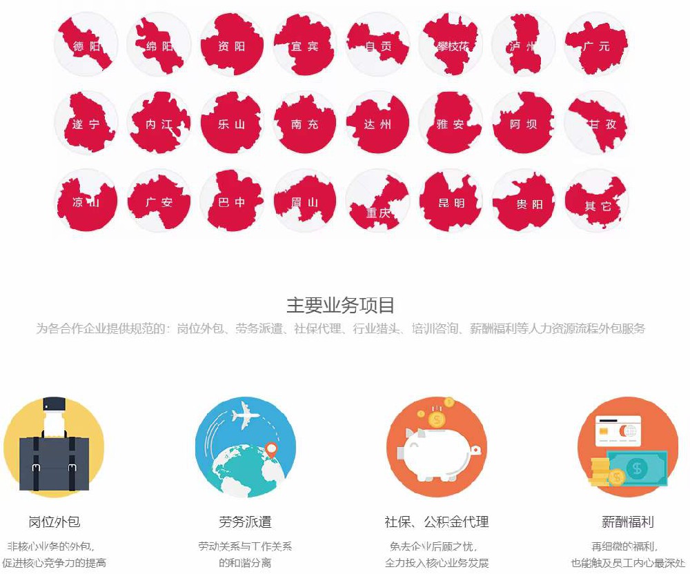 • 渝才HR國內領先人事外包服務平臺目前可服務的城市名單